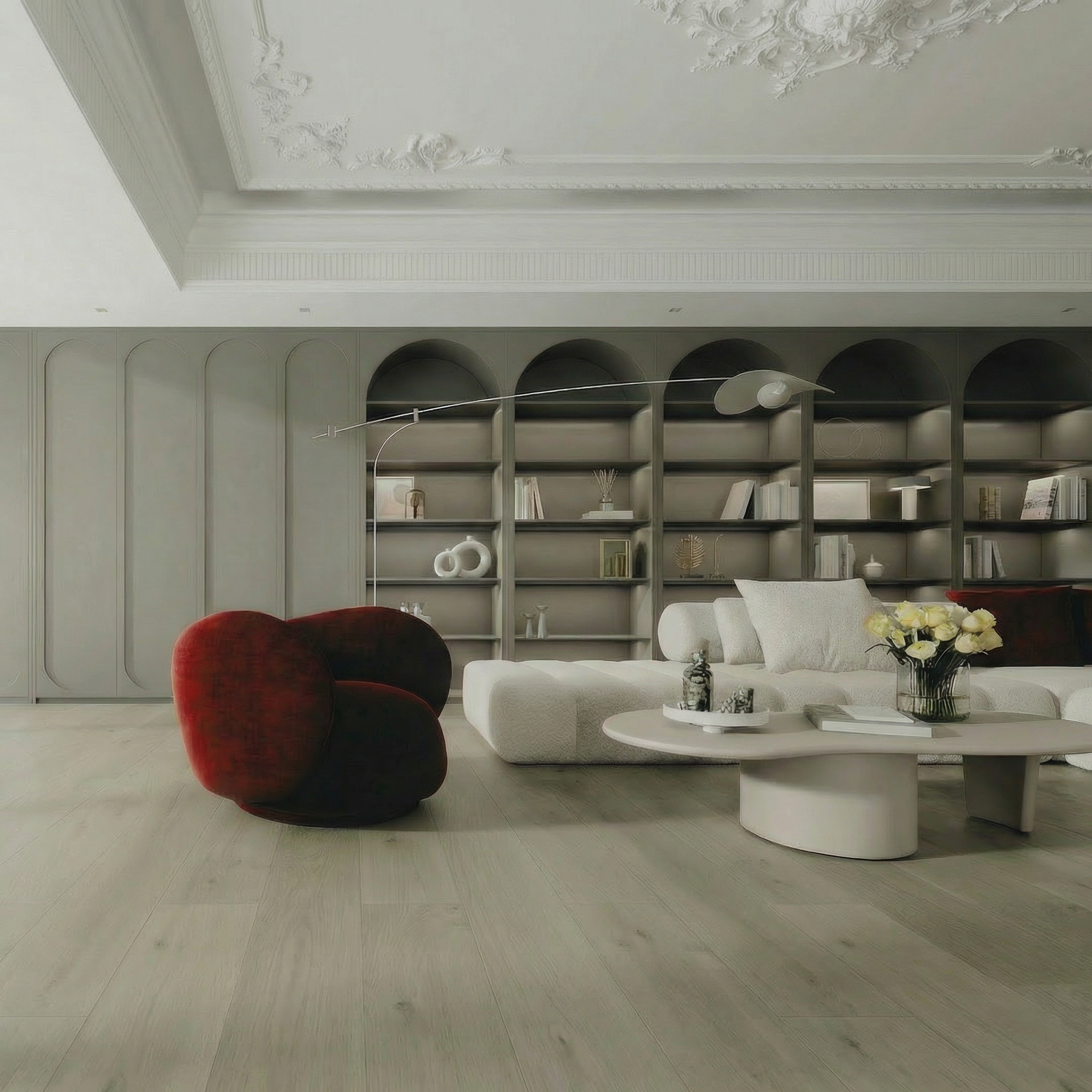 The purity of sustainable materials meets aesthetic refinement and human-scale comfort.
