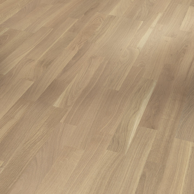 - High-quality engineered wood flooring with a solid oak top layer in white matt lacquer finish