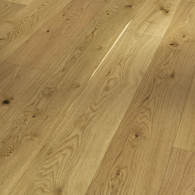 - Engineered wood flooring with a solid oak top layer in matt lacquer finish