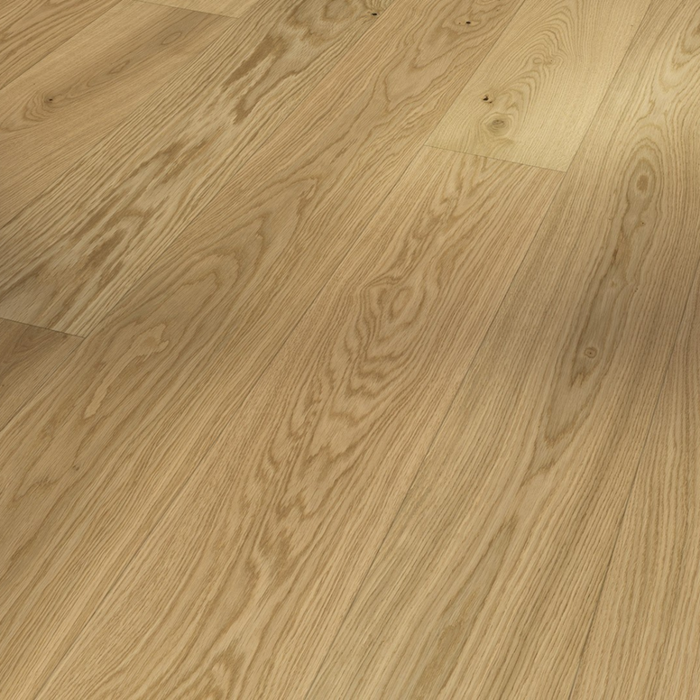 - Engineered wood flooring with a solid oak top layer in natural oil plus finish