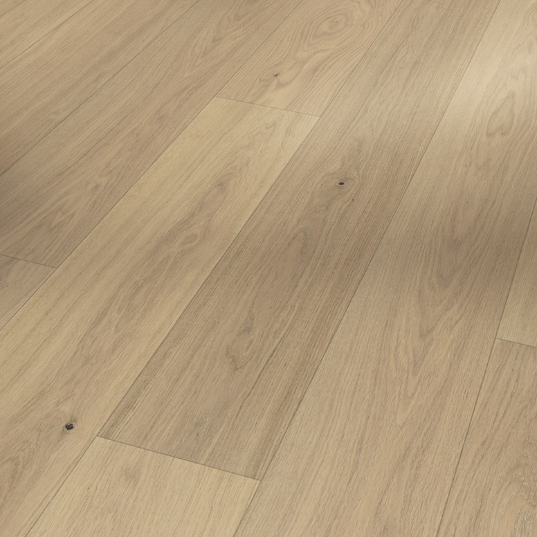 - Premium engineered wood flooring featuring a solid oak top layer in white matt lacquer finish